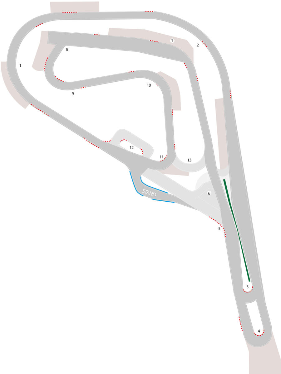 La piste asphalte a la particularité d’être un tracé très sécurisé avec de larges dégagements et des bacs à gravier pour une sécurité maximale.