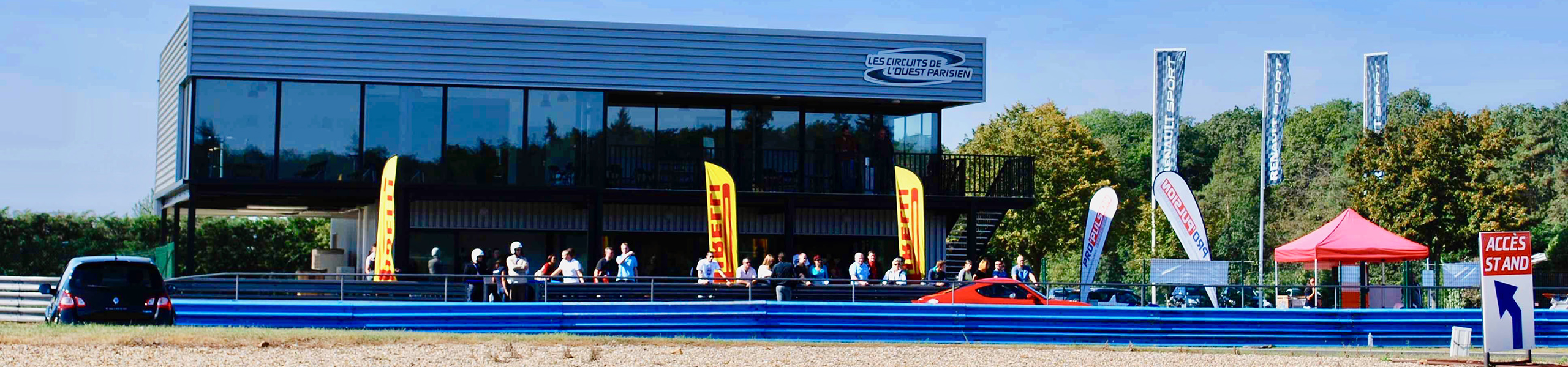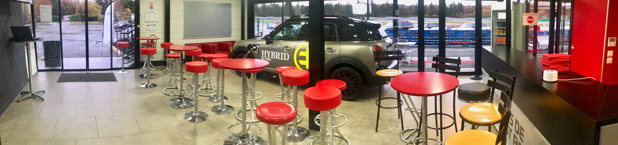 Cet espace réceptif multifonctionnel se trouve en bordure du circuit asphalte sur deux niveaux. Le rez-de-chaussée de 70 m² permet d’accueillir les groupes de clients dans un cadre convivial et moderne, avec un accès direct à la pitlane.