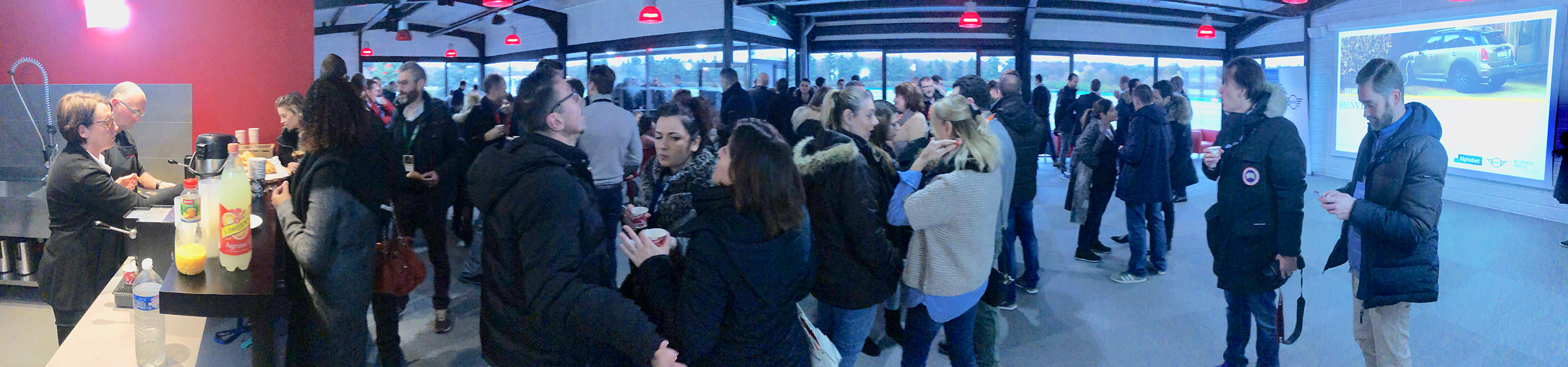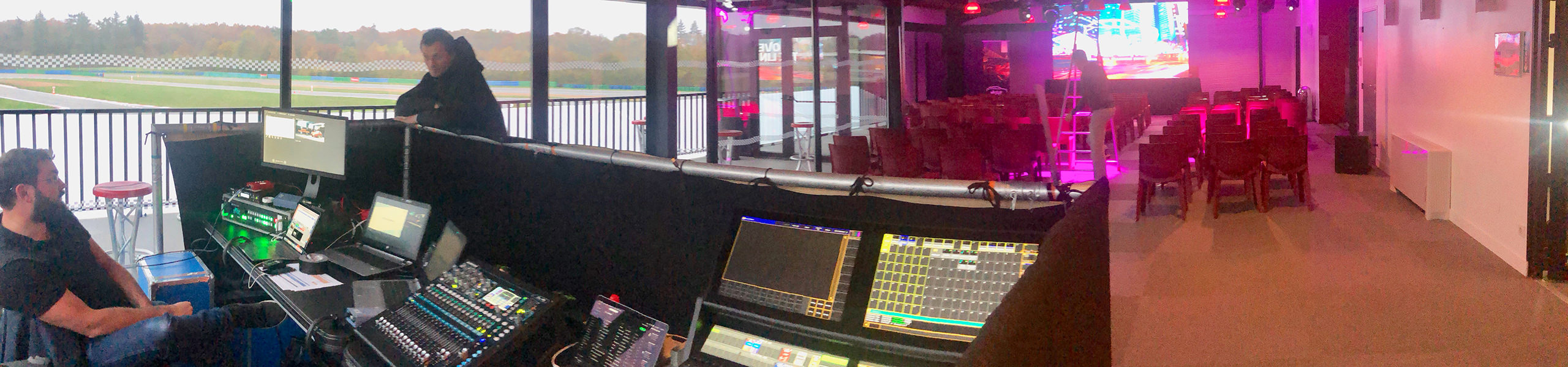 À l’étage, une salle de 170 m² offre une vue panoramique sur la piste principale, ainsi qu’un accès direct à une terrasse couverte de 30 m².